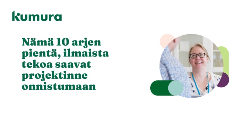 Koska välitämme Kumuralla ihmisistä ja projekteista, tahdomme jakaa sinulle keinoja siihen, kuinka projektin omistajana, ohjausryhmän jäsenenä tai projektinjohtotehtävissä toimivana voit vaikuttaa projektitiimisi merkityksen tunteeseen ja hyvään tunneilmapiiriin. Tästä artikkelista saat top 10 vinkkiä projektinne onnistumisen edellytysten kasvattamiseen.