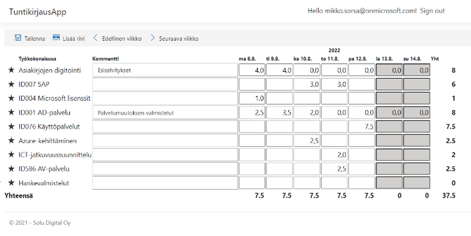 Projektityön resursoinnissa kankeat tai erilliset työkalut vievät aikaa. Microsoftin työkaluihin pohjautuvalla sovelluksella tuntikirjaukset sujuvat.