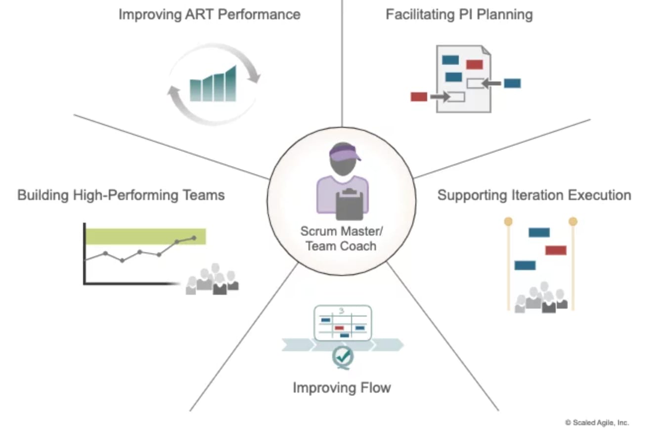 Mikään ei voita agiletiimiä. Paitsi toimiva agiletiimien tiimi. Vastuita ja ohjeistuksia on nyt selkeytetty, että ihmisillä olisi selkeämpi kuva omasta roolistaan, ja jokaisella olisi mahdollisuus myös kehittää itseään. Jokaiselle roolille (ja myös ARTille eli junalle) on nyt oma “vastuukiekko”, joka kuvaa roolin vastuut yhdellä silmäyksellä. Sekä kuvaus siitä, miten rooli tekee yhteistyötä muiden roolien kanssa.
