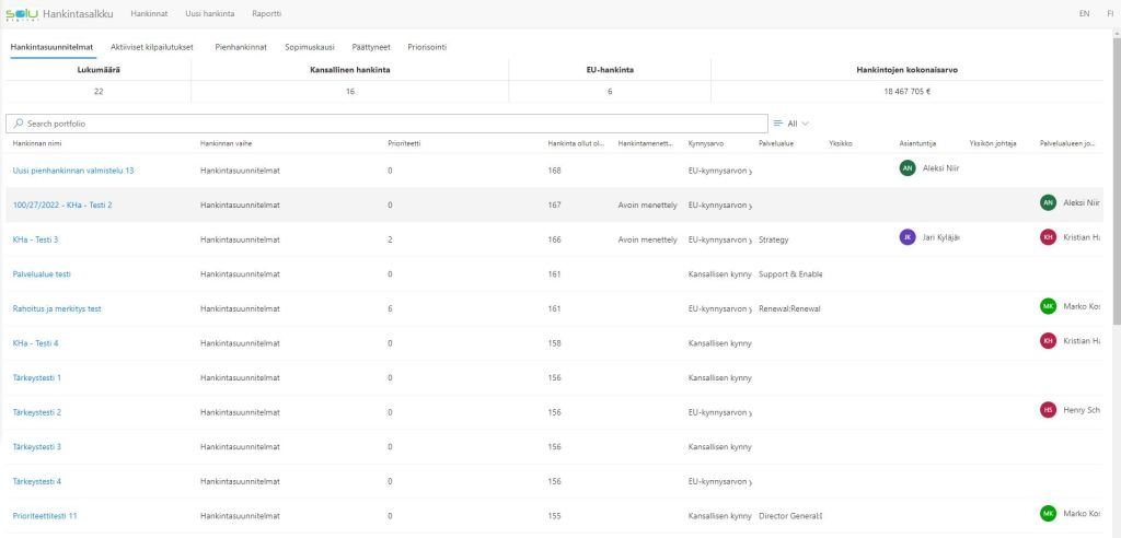 Solu Digitalin kehittämä, Microsoft 365 -ympäristössä toimiva hankintasalkku vastaa moneen tarpeeseen, jotka liittyvät Business Finlandin hankkeisiin ja niihin liittyviin hankintoihin.