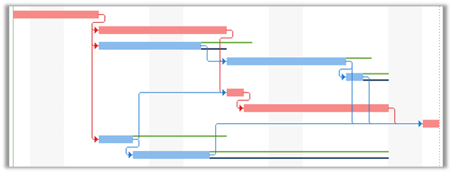 Nykyisin kaavioihin usein lisätään tehtävien väliset suoritusjärjestystä kuvaavat riippuvuudet. Tietokoneohjelmia, kuten Microsoft Project käytettäessä voidaan helposti hyödyntää kriittisen polun menetelmää. Menetelmän avulla lasketaan projektiaikataulun kriittinen polku, jolla tarkoitetaan pisintä tehtävien ketjua projektin alusta projektin loppuun. Jos jokin kriittinen tehtävä myöhästyy tai venyy, siitä seuraa koko projektin valmistumisen viivästyminen. Tehtäville, jotka eivät ole kriittisellä polulla lasketaan niiden pelivarat. Pelivaralla tarkoitetaan kuinka paljon tehtävä voi viivästyä alkuperäisestä aikataulustaan, ilman että minkään seuraavan tehtävän aloittaminen tai koko projektin valmistuminen viivästyy.