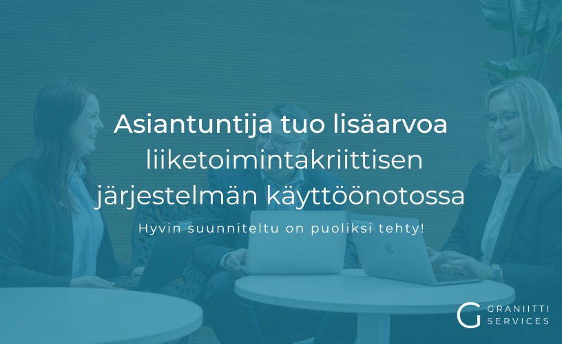Ulkopuolisen erityisasiantuntijan käyttö käyttöönottoprojektissa on perusteltua. Linjaorganisaatiossa käyttöönottoihin törmää melko harvoin ja taas suuriin käyttöönottoihin hyvin harvoin. Osalle projektiryhmästä taas toimeksianto päättyy tuotantoonottoon ja on syytä huomioida myös alkutuotannon lisääntynyt resurssitarve. Suuremmassa käyttöönotossa on myös monta vaihetta ja erilaista näkökulmaa, joita ei heti ensimmäisellä kerralla tule edes ajatelleeksi. Liiketoimintakriittisen projektin tuotantoonvienti ei saa epäonnistua, jolloin nämä ovat usein hyvin hektisiä ja paineistettuja tilanteita. Graniitin projektiasiantuntijat ovat vuosien saatossa jalostuneet tällaisissa tilanteissa ja tottuneet toimimaan kovan paineen alla.