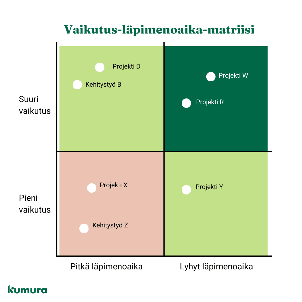 Vaikutus-läpimenoaika-matriisi auttaa hahmottamaan projektien arvoa projektisalkussa.