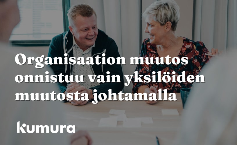Tämä syvällinen yksilönäkökulma oli se puuttuva palapelin palanen itselläni. Loppujen lopuksi vain yksilöiden muutoksen kautta muutos organisaatiossa voi onnistua.